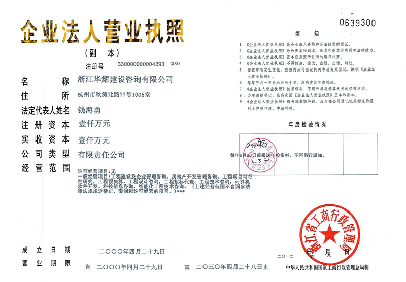 浙江華耀建設(shè)咨詢有限公司龍溪北路分公司