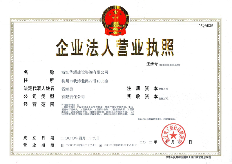 浙江華耀建設(shè)咨詢有限公司龍溪北路分公司